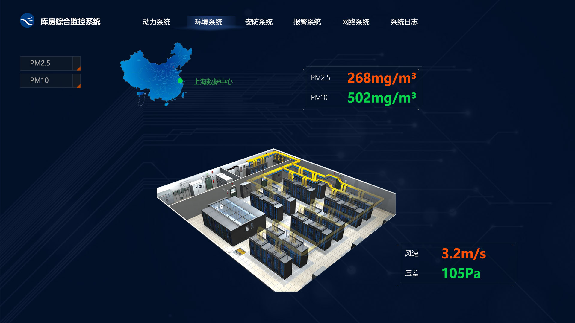 通過在機房安裝PM探測器,監測機房的空氣顆粒物情況。